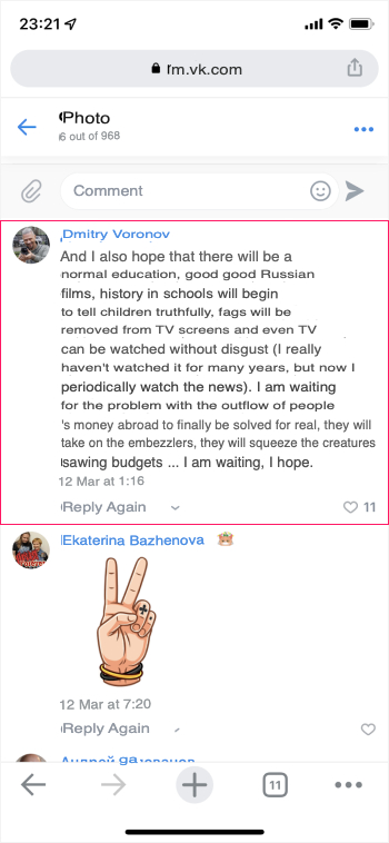 Sedov in his posts calls Europeans and Americans words that I don't even want to repeat. And he says that these are his main enemies. And immediately realizing what he wrote, he deletes his posts, fearing responsibility to all of you. He also takes fake screenshots from our social networks and posts things that never happened. The originals of our posts are still on our Instagram and Facebook.
